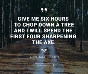 “Give me six hours to chop down a tree and I will spend the first four sharpening the axe.” Abraham Lincoln