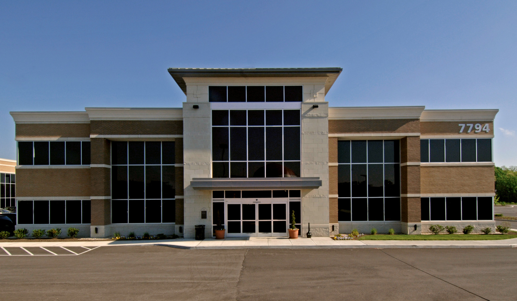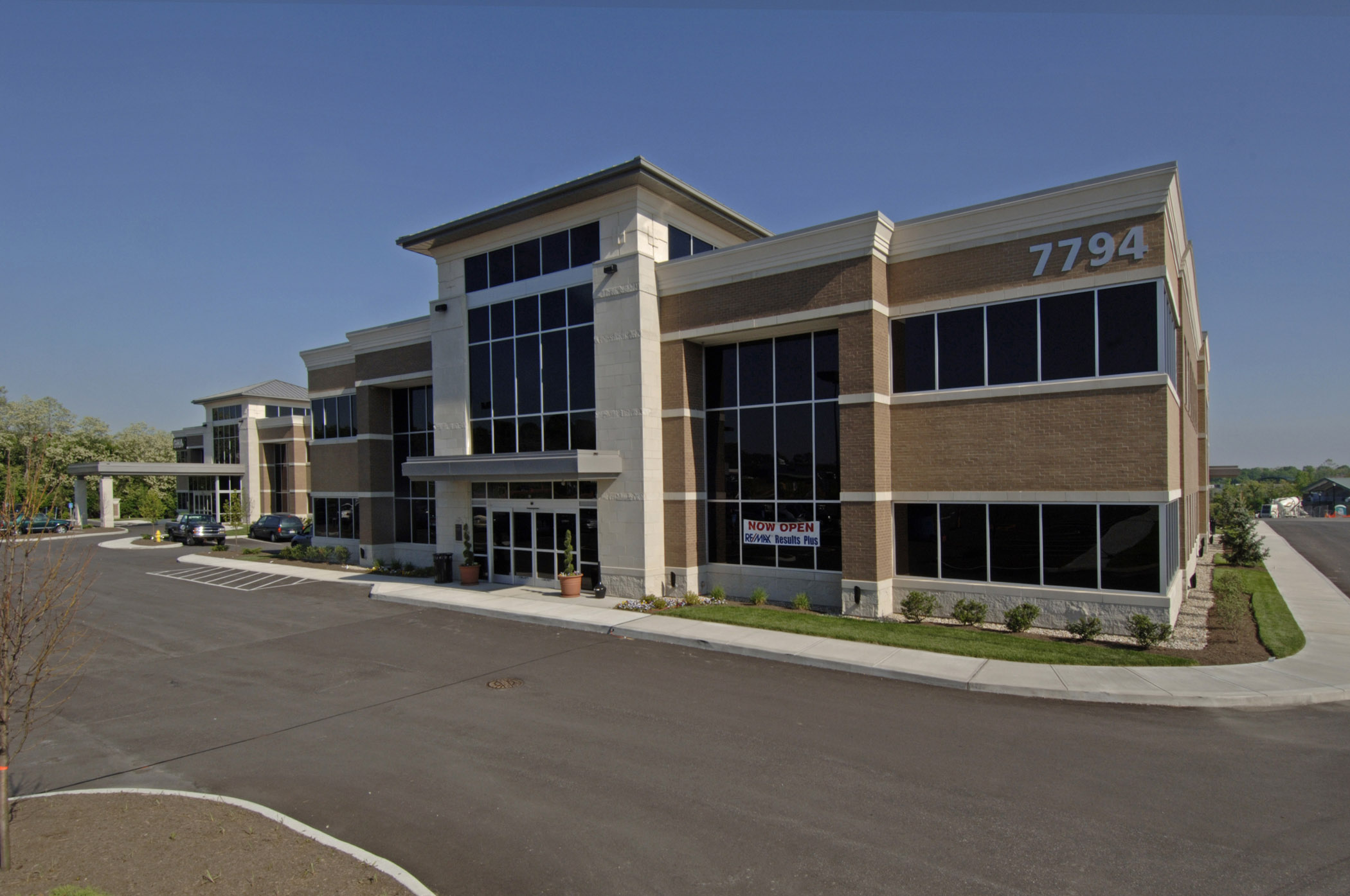 - Building II — 45,000 SF campus expansion shell: The second building significantly expanded the campus with a two-story, 45,000-square-foot medical office shell (22,500 SF per floor), nearly doubling the total campus footprint. Site work for Building II was coordinated under the Phase I contract, with Building II civil engineering, paving, and site improvements referenced back to the original KZF site drawings dated August 2004. The Building II scope also included demolition of an existing Thriftway building on the property.