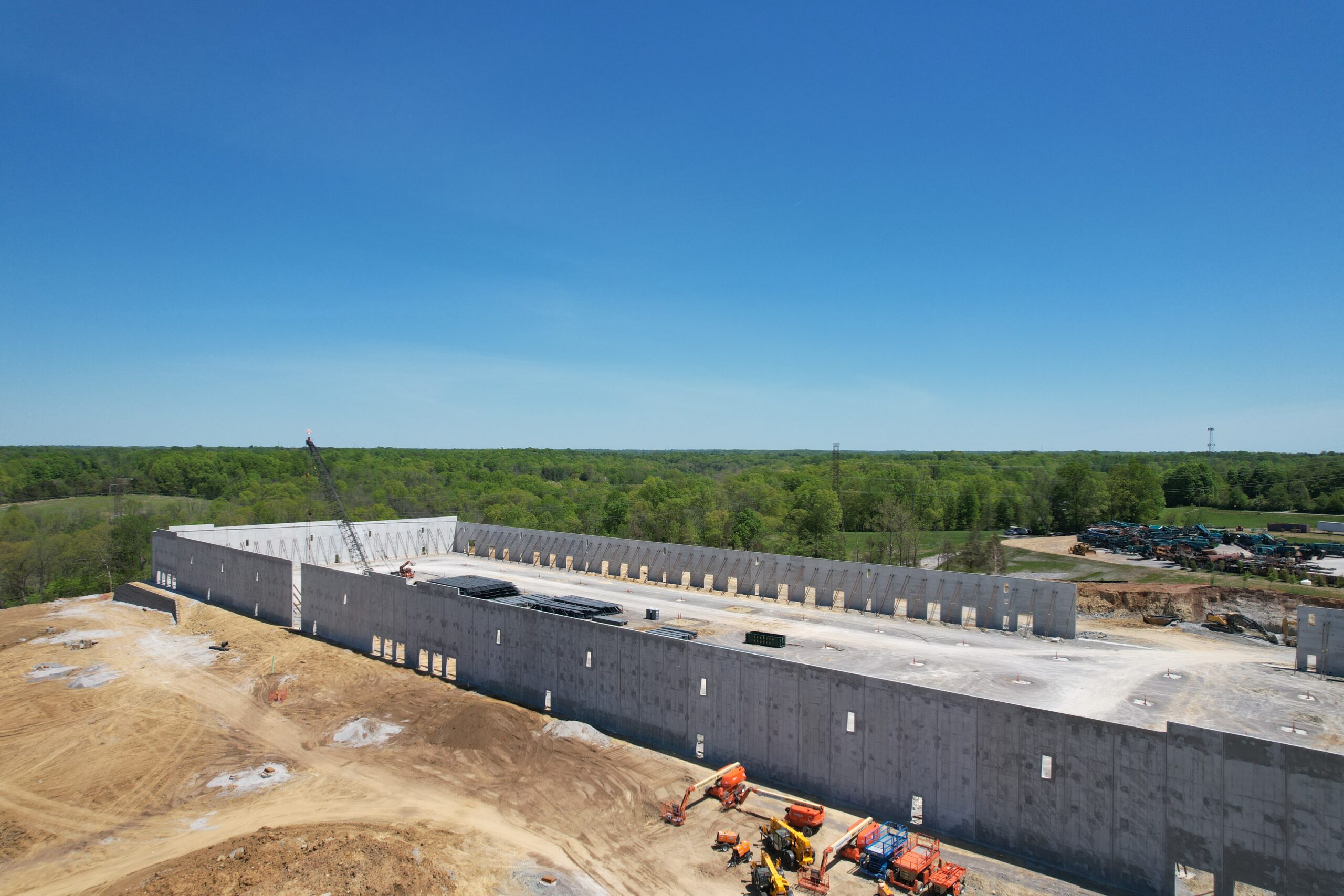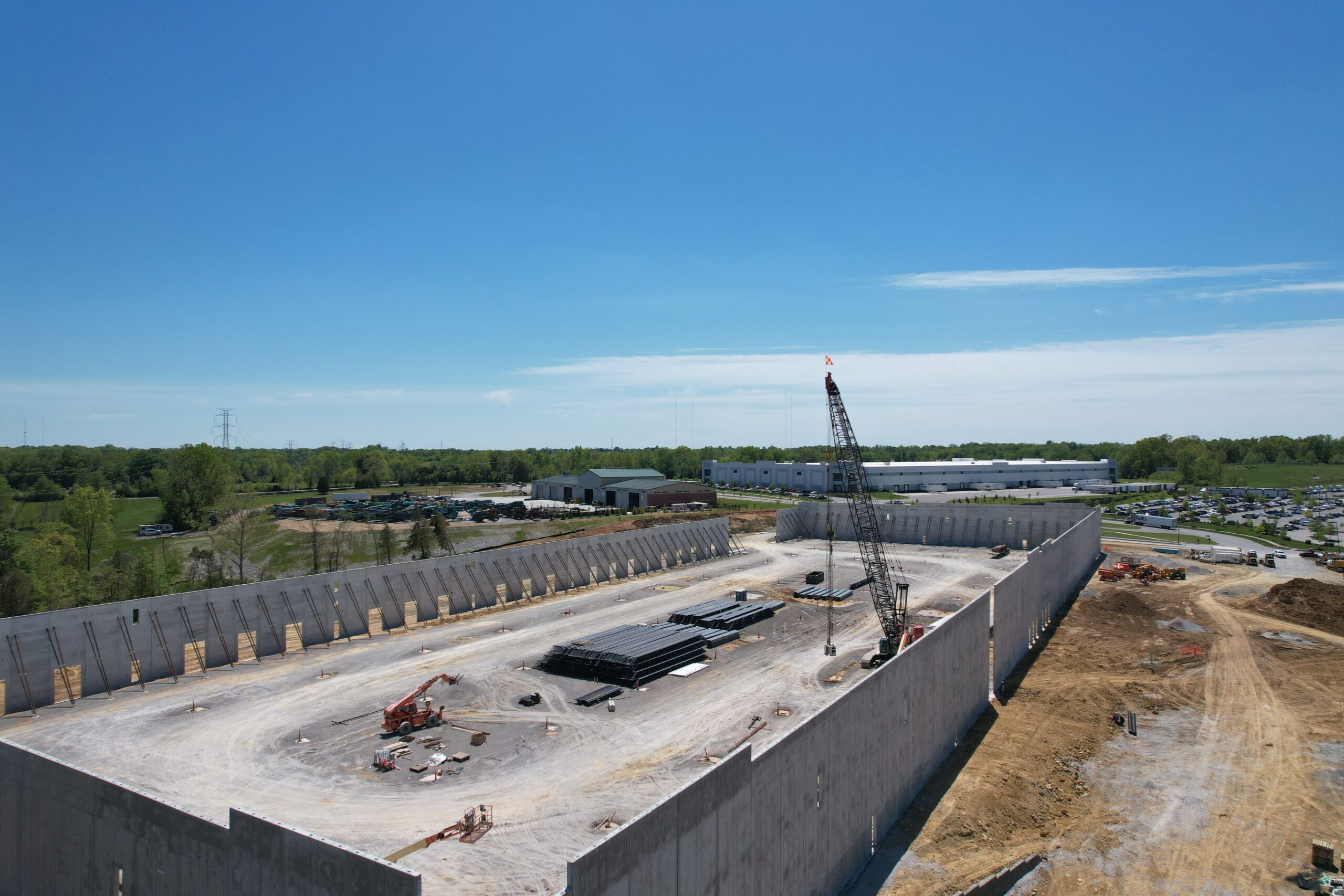 - Slabs & Pavement: 7” interior concrete slab over 3” DGA; heavy-duty concrete dock courts extending 60’ from dock walls and 10’ at dolly pads; light- and heavy-duty asphalt paving sections for parking and truck circulation.
