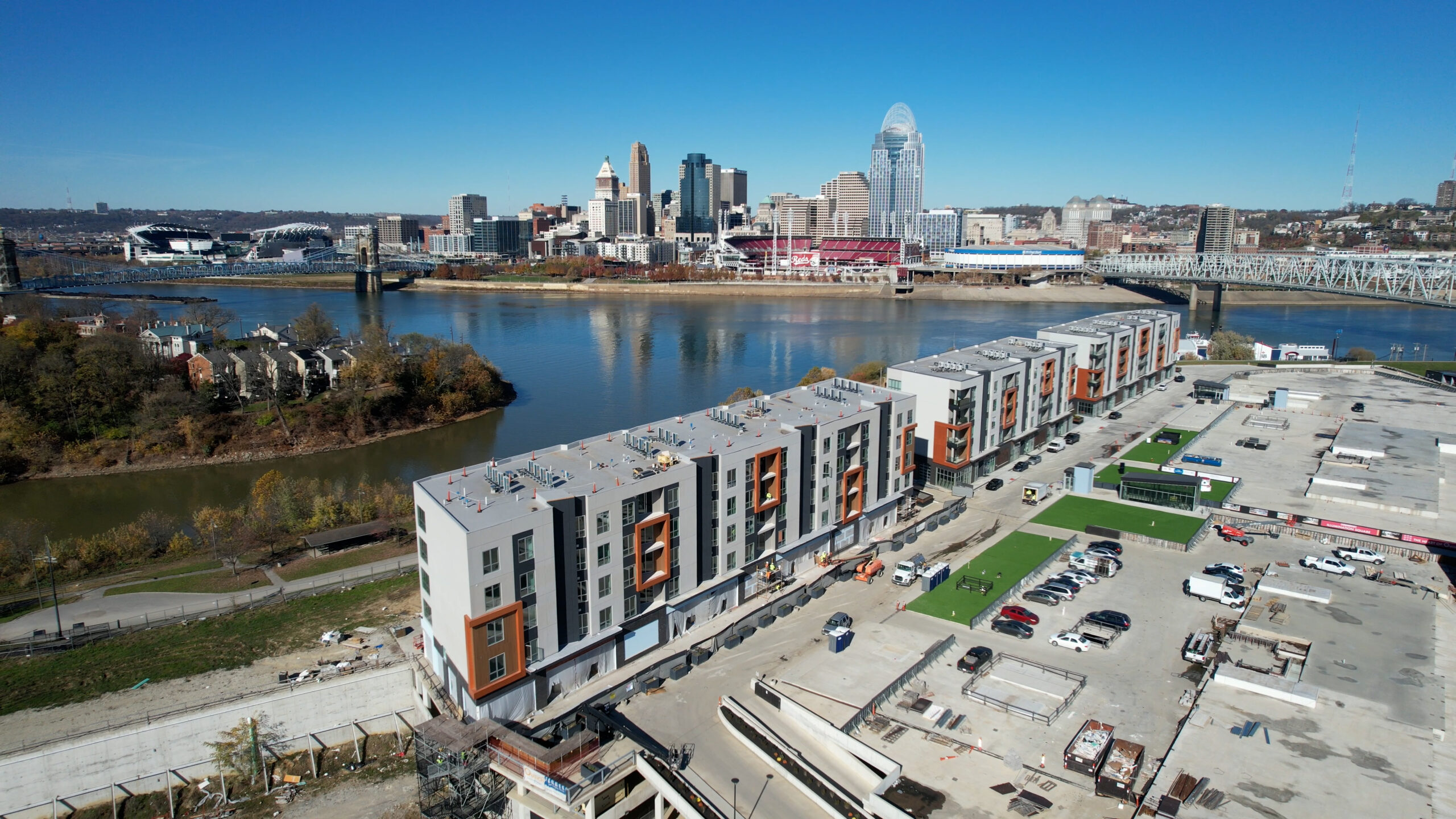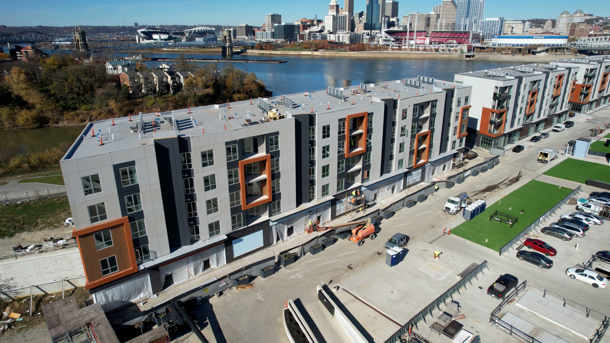 - Mixed-Use Residential Development: New construction of Boardwalk Residences at Ovation – Building A1 in Newport, Kentucky, designed as a modern residential building with integrated ground-level uses.