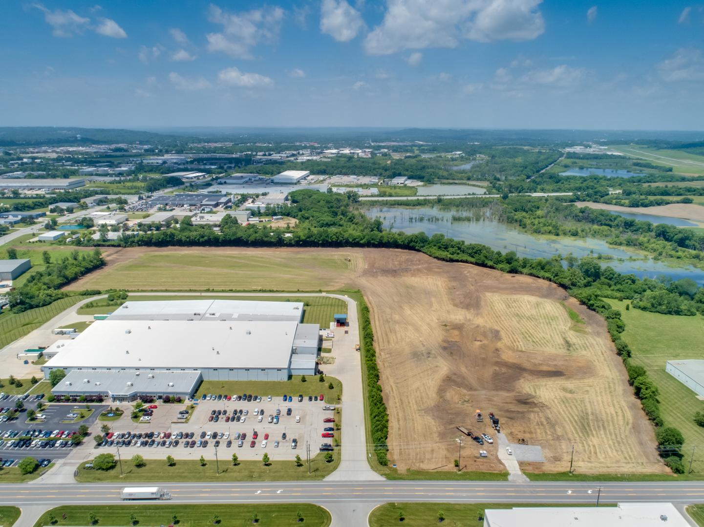 - Site & Civil Scope: Significant site development including mass grading, utilities, stormwater management, truck courts, asphalt paving, concrete paving, and site circulation improvements to support heavy truck traffic.