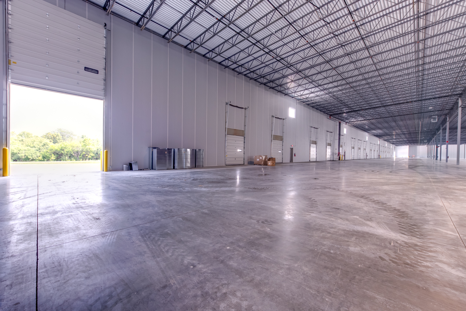 - Building 1: Dock doors: 29 Parking spaces: 76 trailer spaces, 241 auto spaces Clear height: 32′ Bay Spacing: 55’/53′