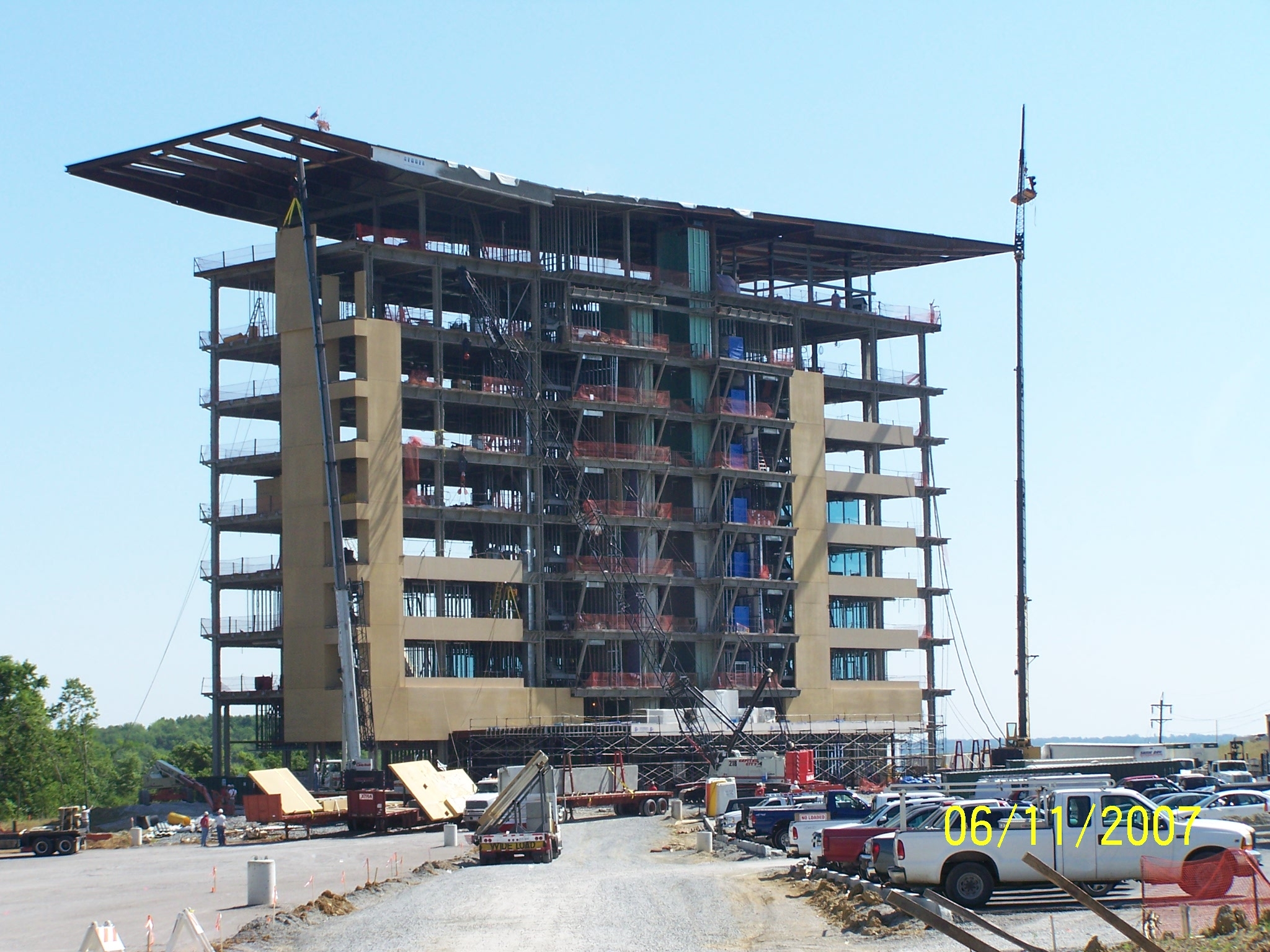 Paul Hemmer Company served as construction manager for Columbia Sussex’s iconic corporate headquarters, a 9-Story 100,000 sq. ft. facility in Crestview Hills, Kentucky. Hemmer assisted with the site acquisition and entitlement approval for the project, which is located in the Thomas More Centre research park. The building, which has become a landmark in Northern Kentucky, overlooks I-275 and is visible throughout the Northern Kentucky region. Hemmer also oversaw the construction of The Richwood Tahoe Railroad, a 1.5-mile railroad that was constructed on site for a ½-scale steam locomotive.