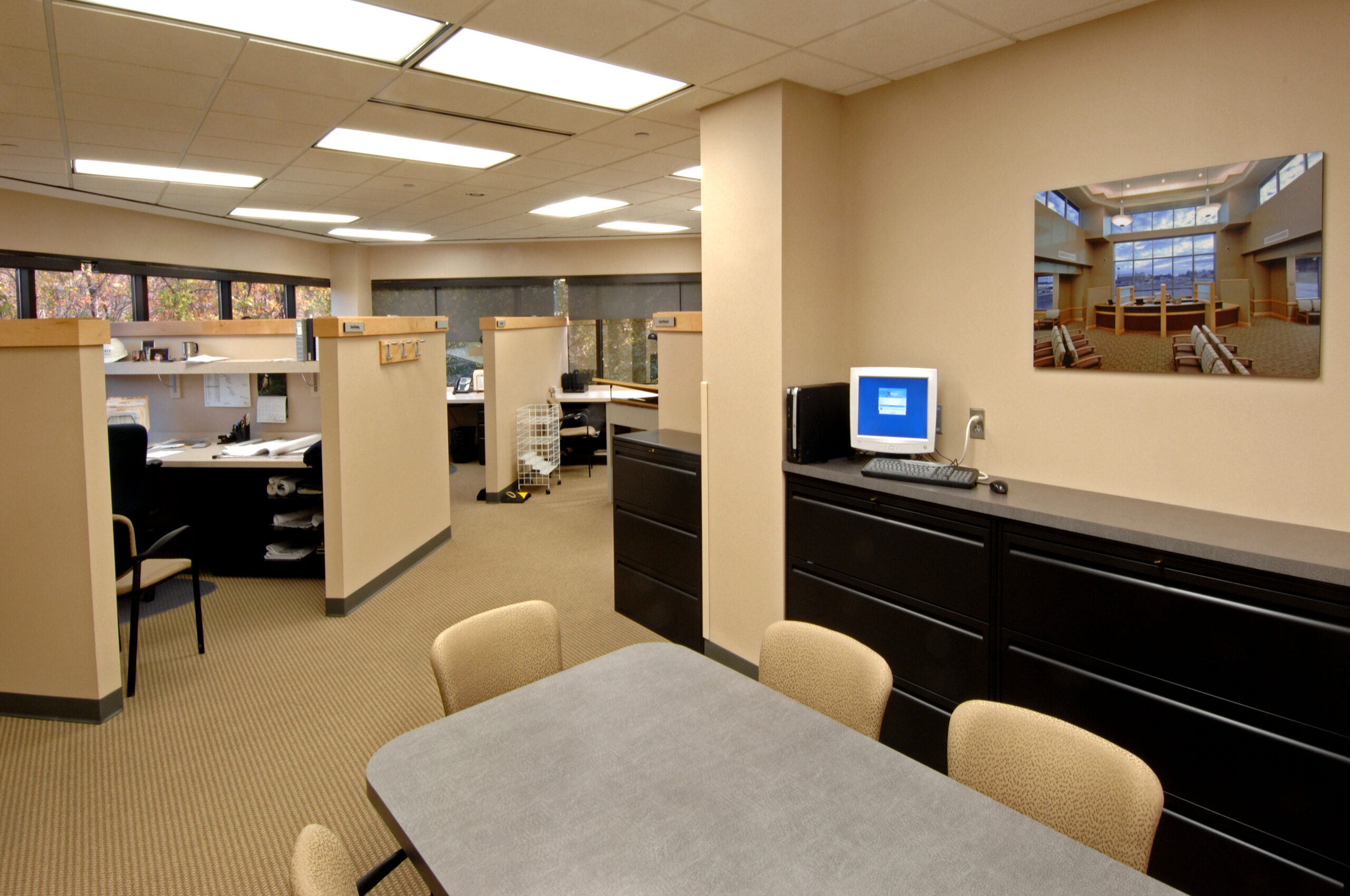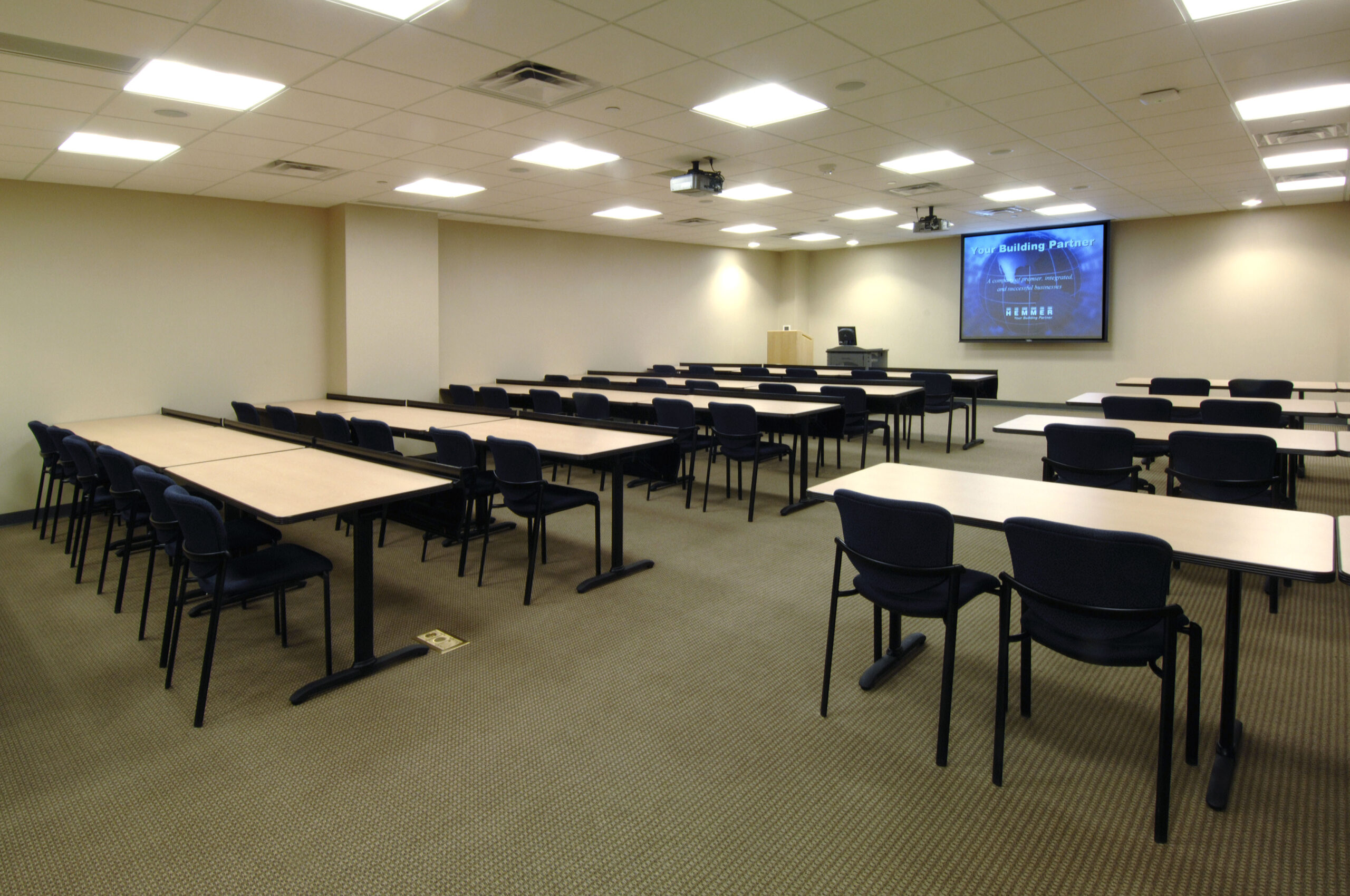 - Typical office floors feature open tenant floor plates with central restroom core, elevator lobby, and mechanical/electrical rooms