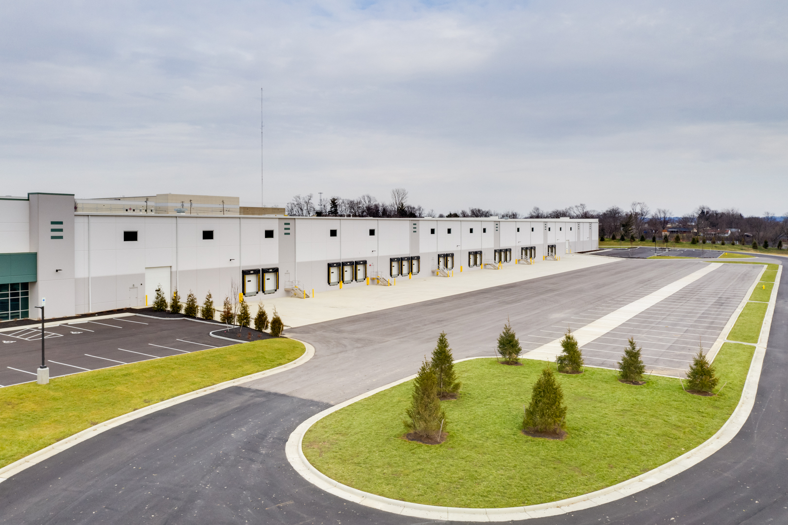 - Load-bearing precast concrete walls — both buildings clad in insulated precast panels (R-12 minimum); 75,923 SF of panels for Building 2; 100,733 SF for Building 3; knock-out provisions for future dock doors and office windows at all tenant locations.