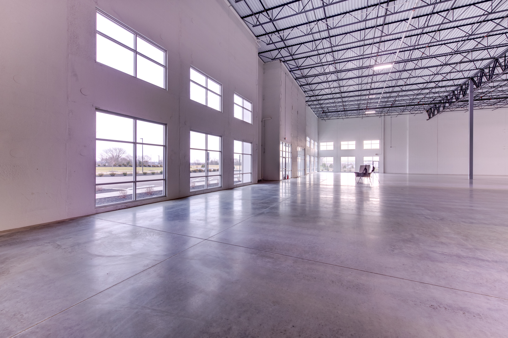 - High-flatness concrete floor slabs — Building 2: 6" unreinforced, FF 55/FL 35; Building 3: 7" unreinforced, FF 55/FL 35; both over 4" aggregate base with 42# WWF reinforcing in dock bays.