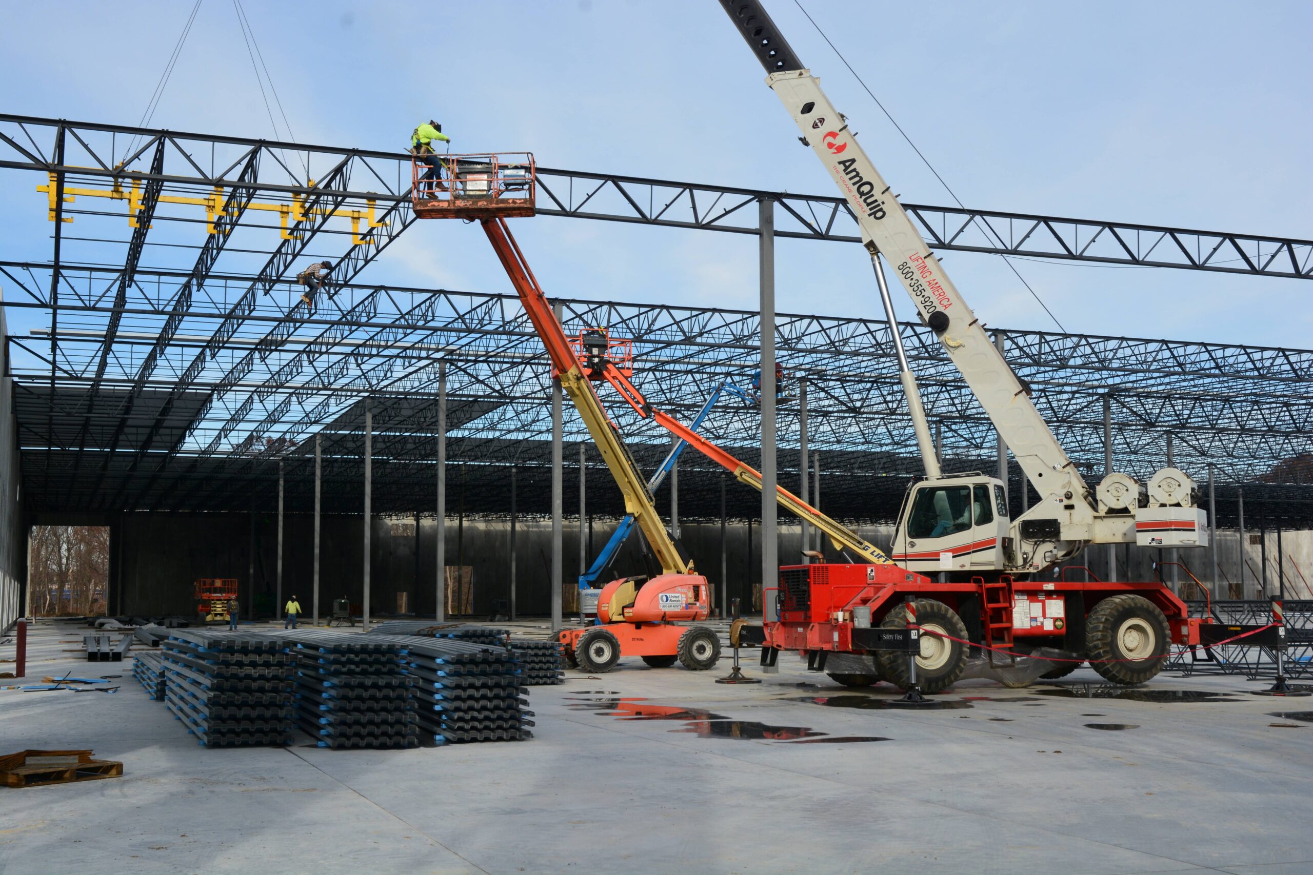 • 36-foot clear height warehouse with structural steel framing and large open-span bays