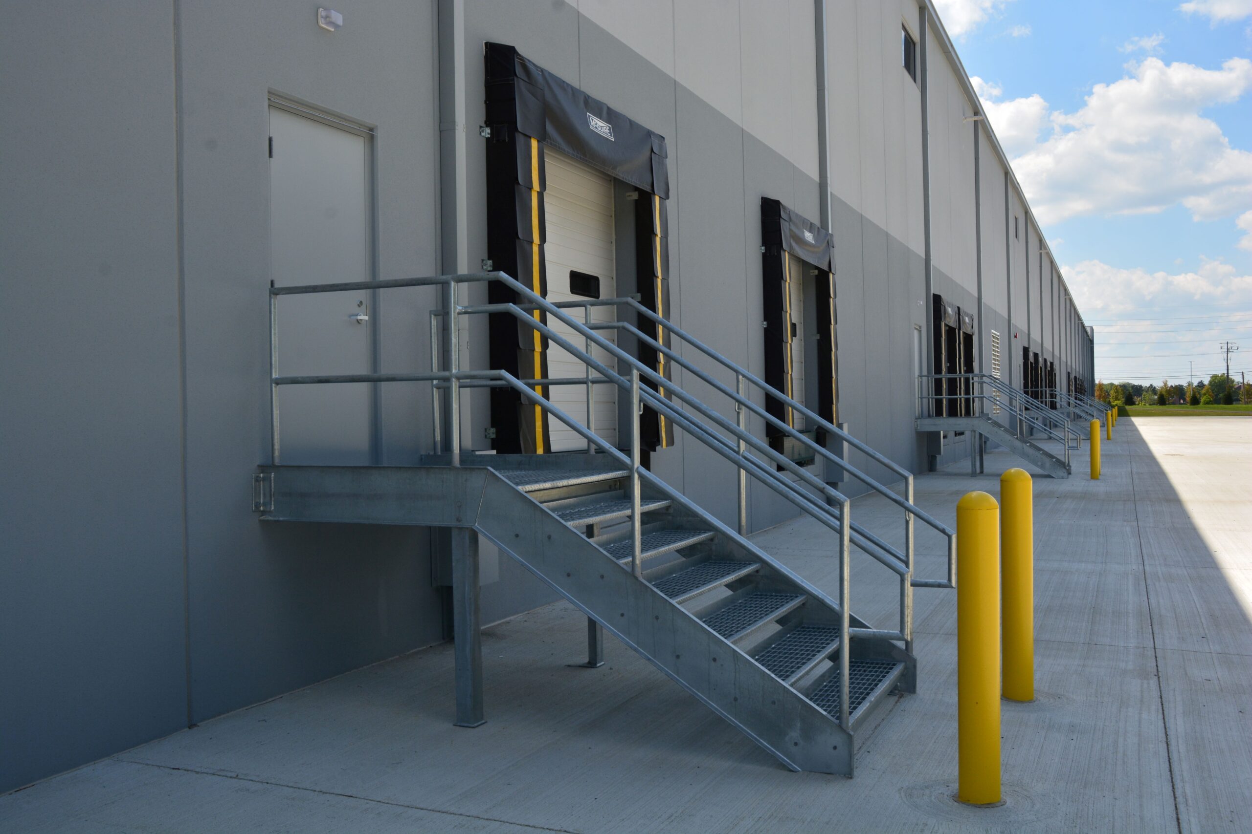 • 40,000-lb capacity dock levelers, dock seals, bumpers, and safety equipment at each dock position